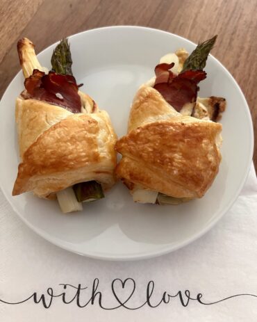 Nette Vorspeise in der Spargelzeit, die warm und kalt schmeckt. Eignet sich auch super als Fingerfood.